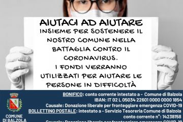 DONAZIONE LIBERALE PER FRONTEGGIARE L'EMERGENZA CORONAVIRUS