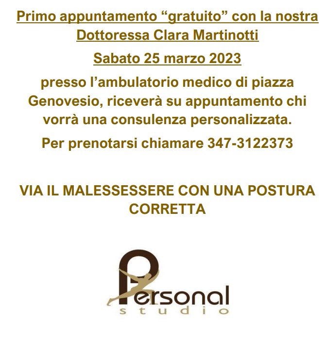 PRIMO APPUNTAMENTO GRATUITO CON LA DOTTORESSA CLARA MARTINOTTI PRESSO L'AMBULATORIO MEDICO DI PIAZZA GENOVESIO