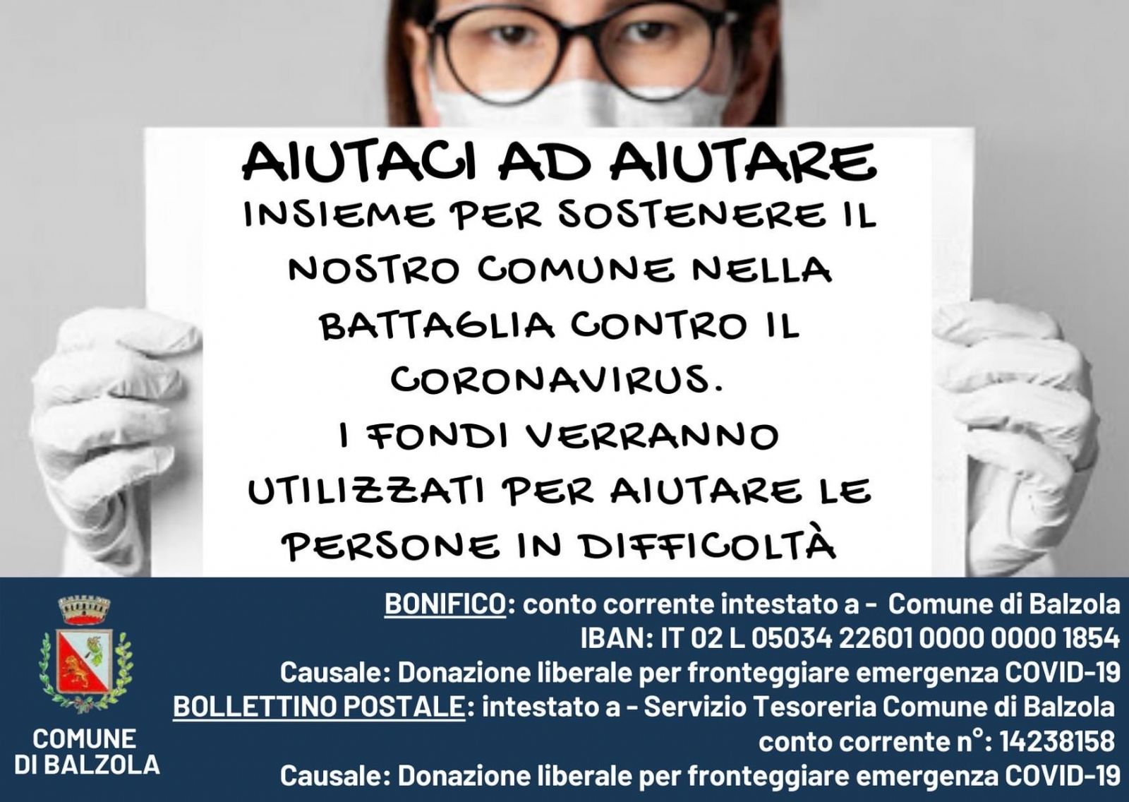 RACCOLTA FONDI DEL COMUNE DI BALZOLA CON DONAZIONE LIBERALE PER FRONTEGGIARE L'EMERGENZA CORONAVIRUS