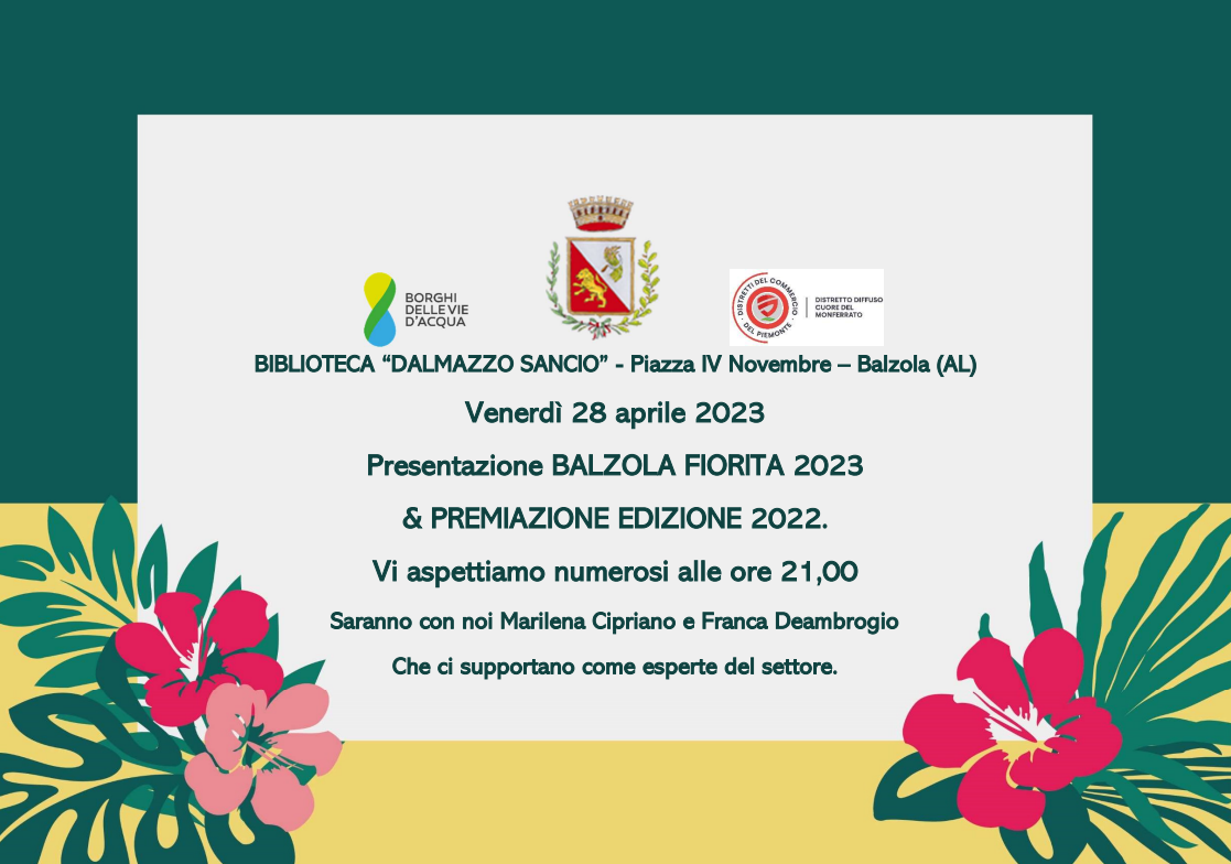 VENERDI' 28 APRILE 2023 PRESSO LA BIBLIOTECA DALMAZZO SANCIO ORE 21.00