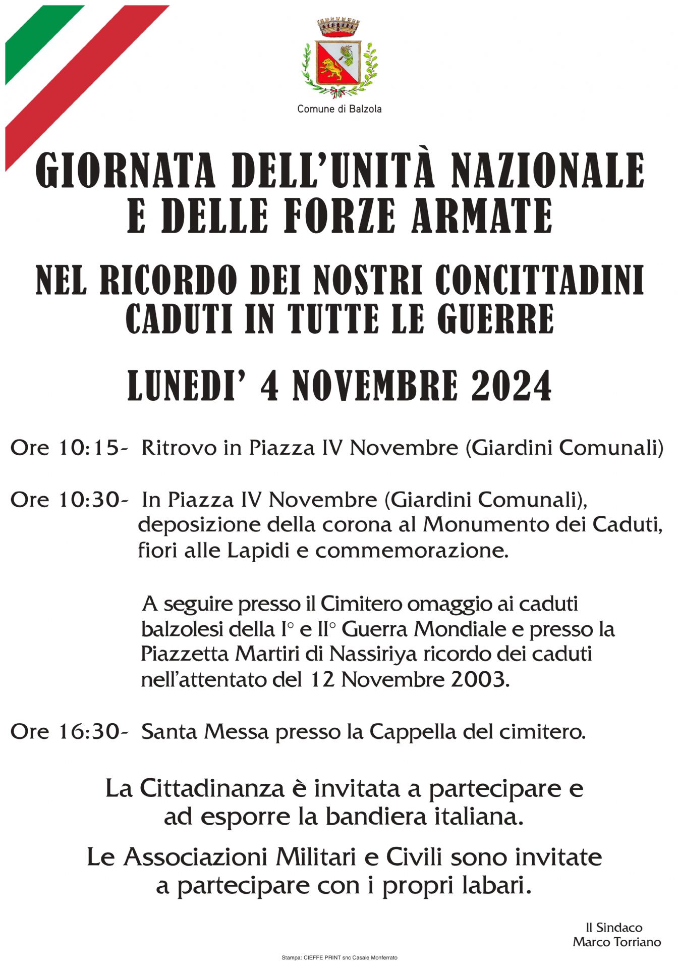 Giornata dell'Unità Nazionale e delle Forze Armate nel ricordo dei nostri concittadini caduti in tutte le Guerre
