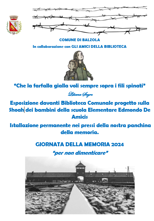 Esposizione davanti Biblioteca Comunale, progetto sulla Shoà dei bambini della scuola Elementare Edmondo De Amicis