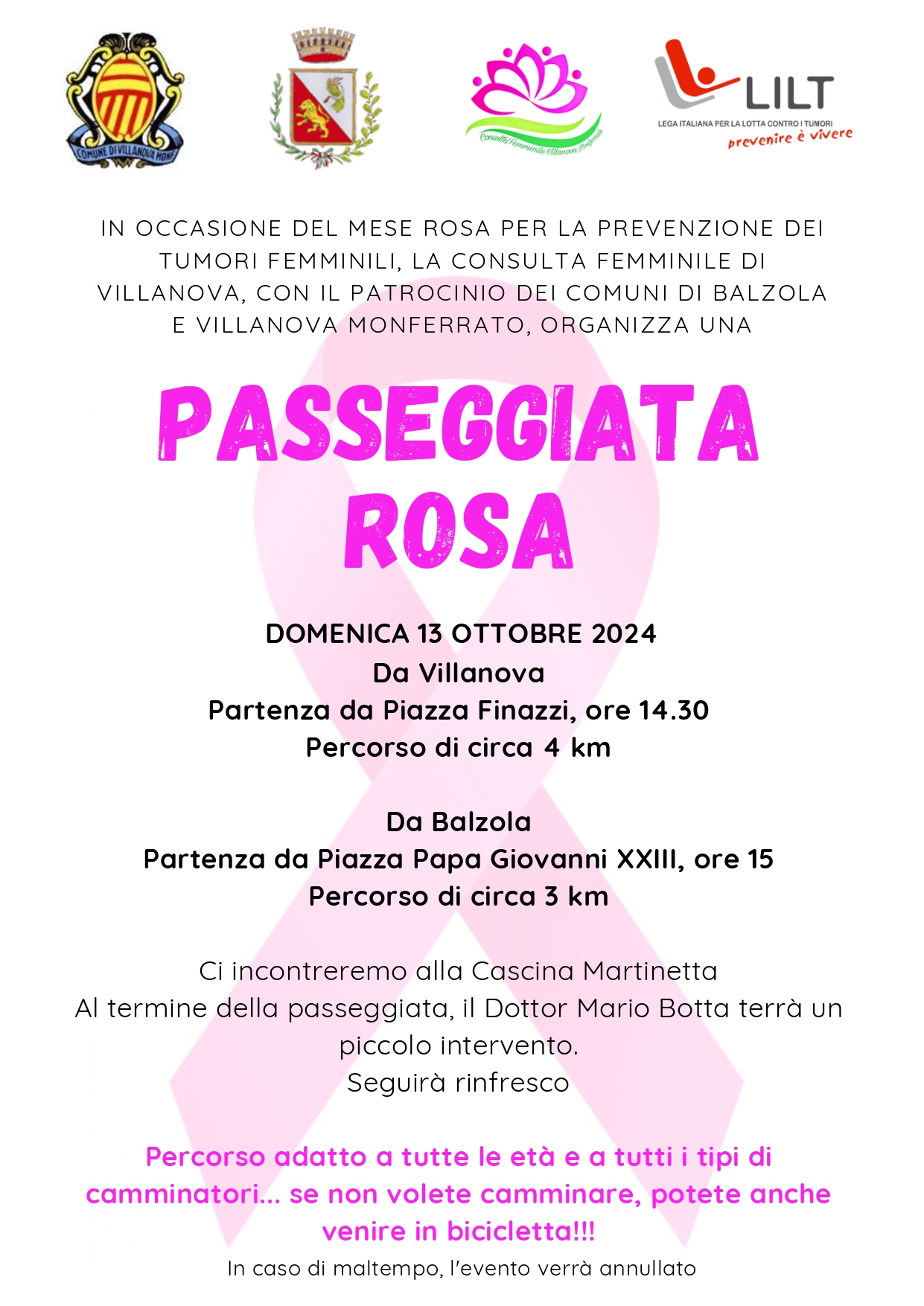 Domenica 13 ottobre: partenza da Balzola da Piazza Papa Giovanni XXIII, ore 15 Percorso di circa 3 km