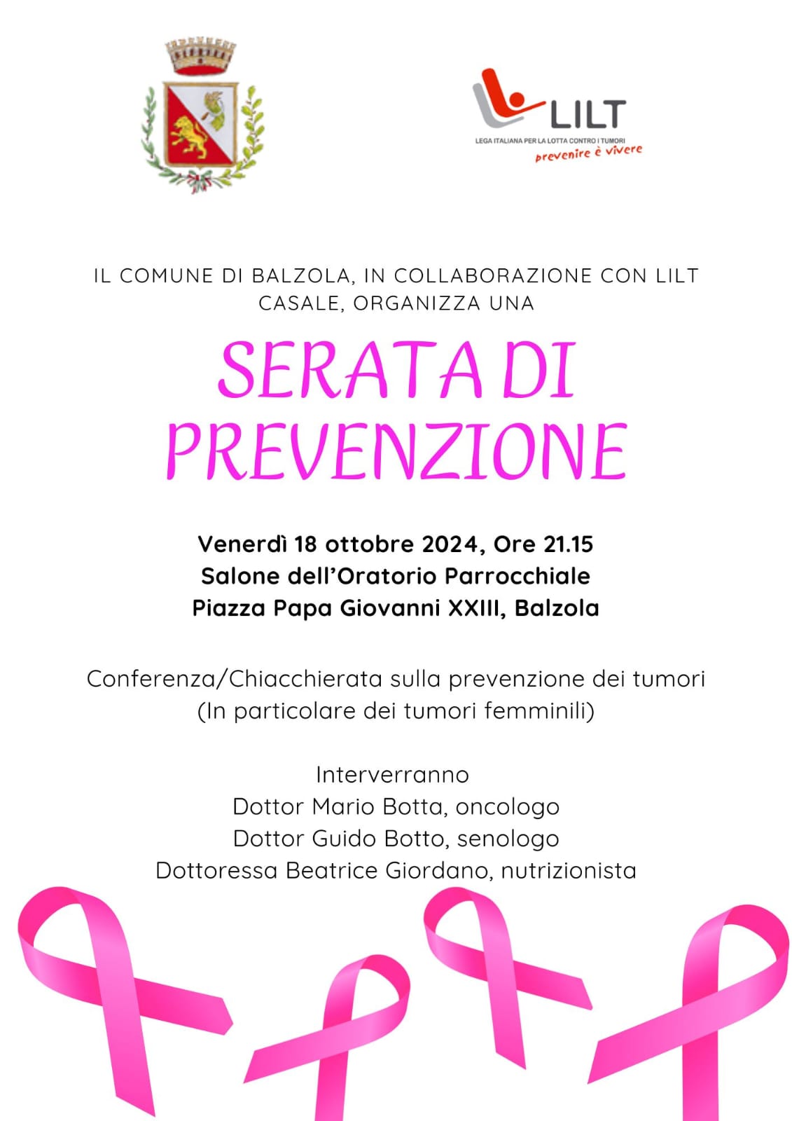 ore 21.15 presso il Salone dell'Oratorio Parrocchiale Piazza Papa Giovanni XXIII Balzola