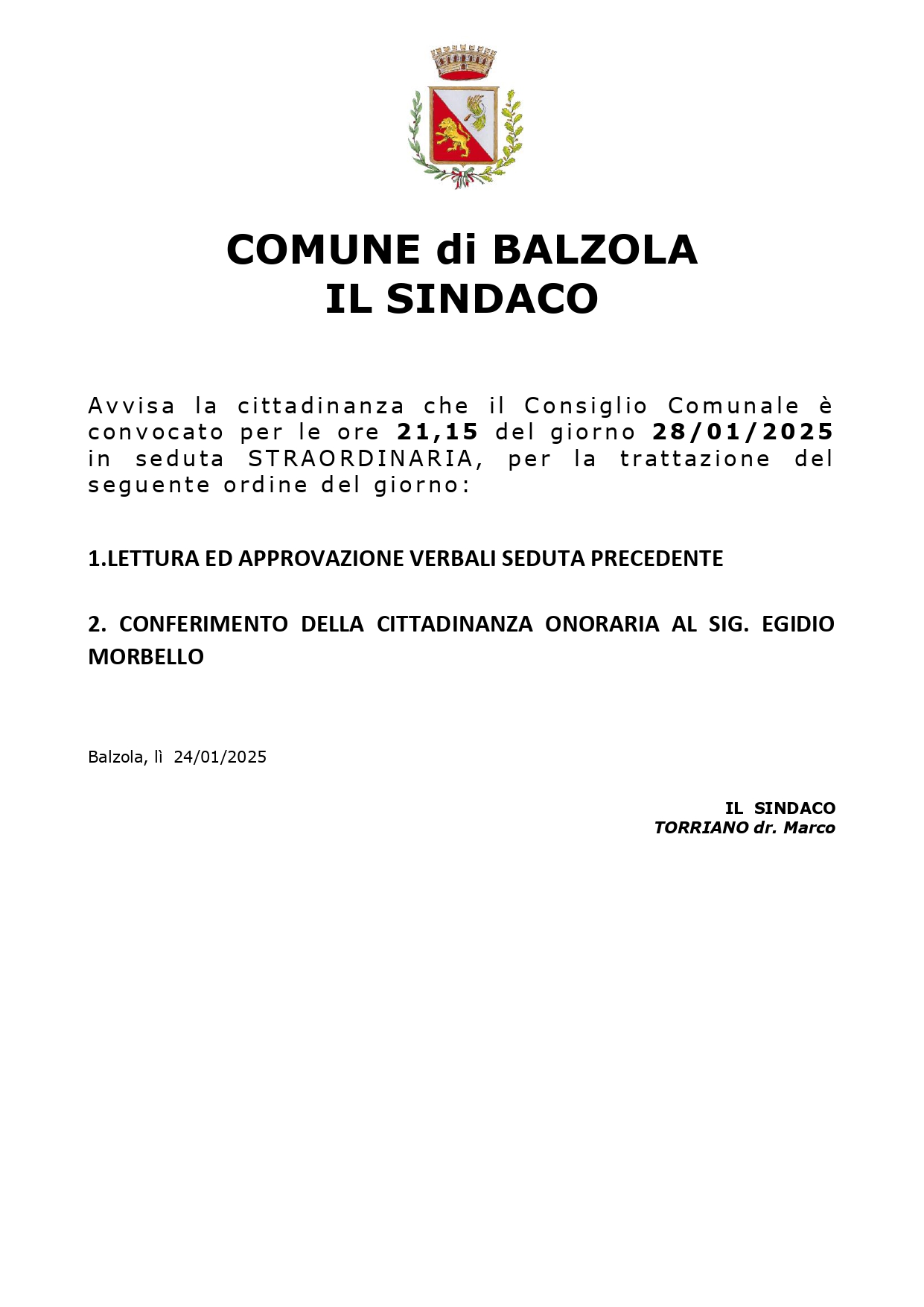 Seduta Straordinaria ore 21.15